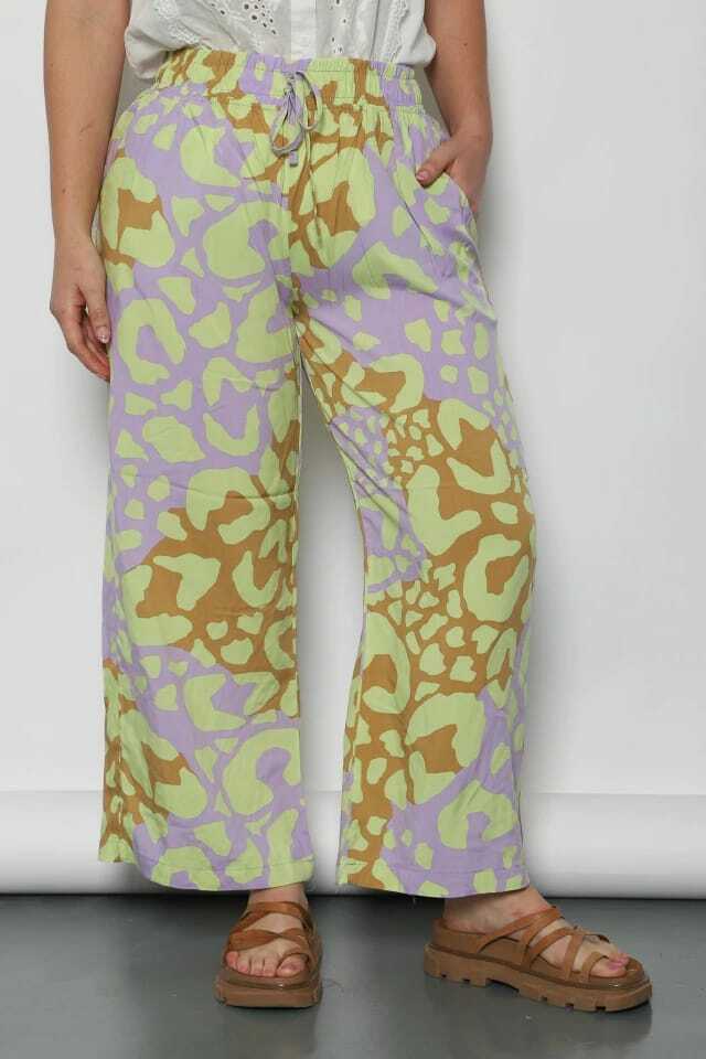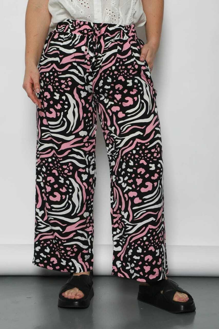 PALAZO DE POPLIN ESTAMPADO CON ELASTICO EN CINTURA Y TIRA