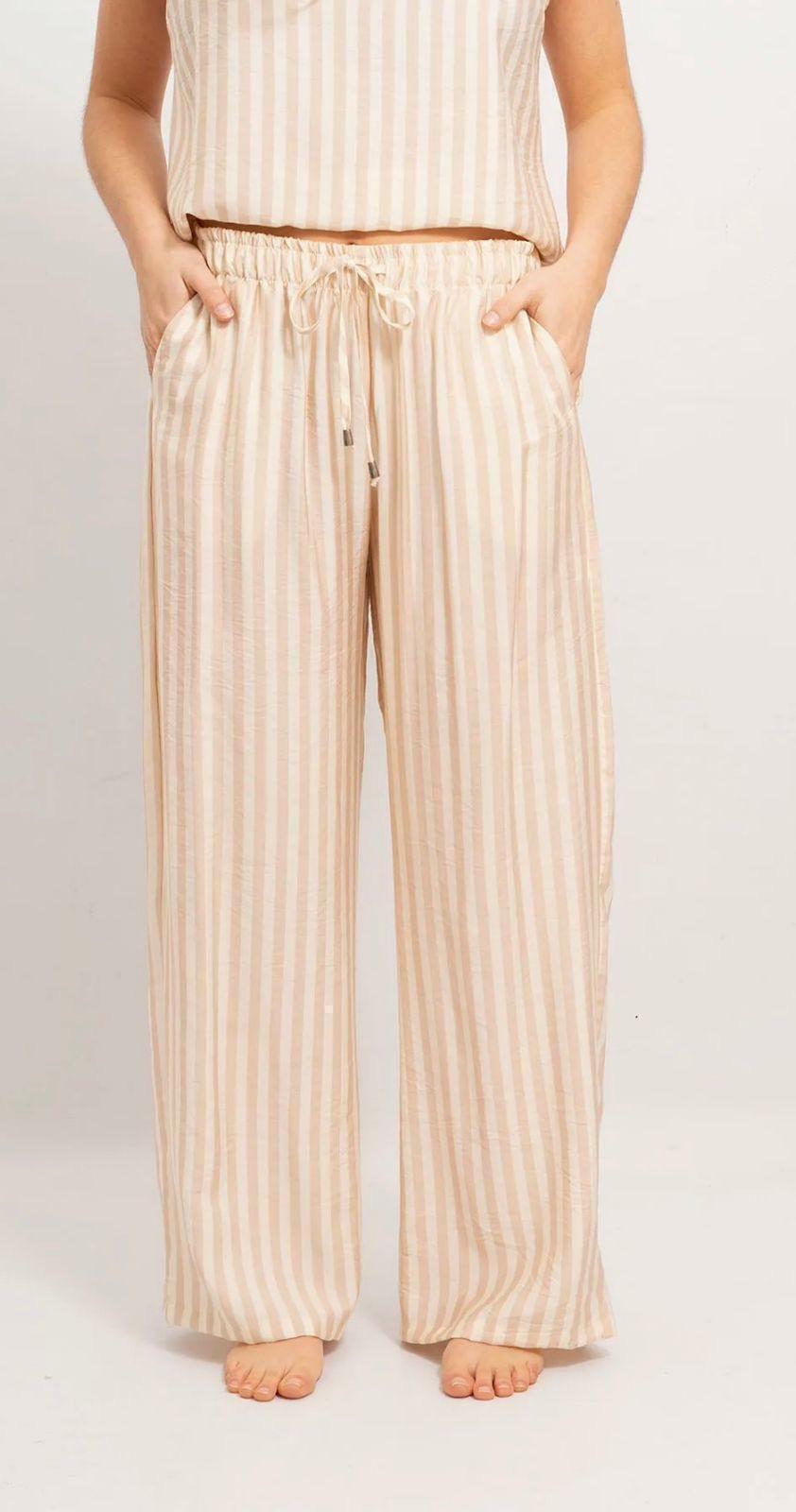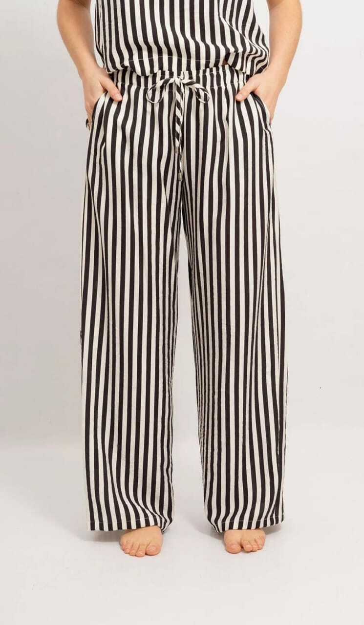 PANTALON DE SEDA ARRUGADA RAYADO CON ELASTICO EN CINTURA Y CORDON