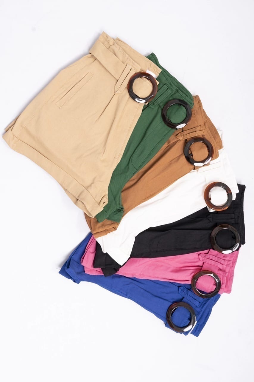 SHORT DE BENGALINA ELASTIZADA CON LAZO Y HEBILLA